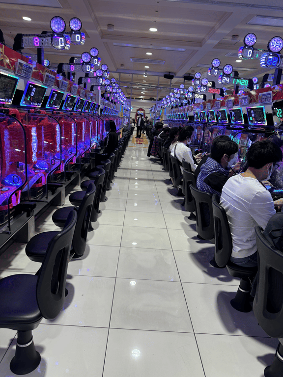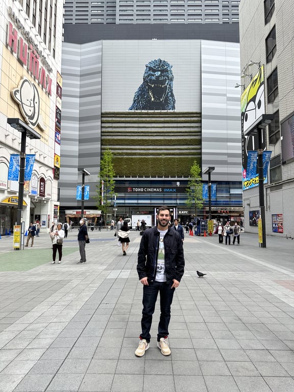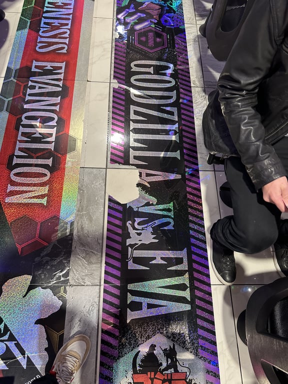 Outside of Toho cinemas. I wish there was more Godzilla related stuff but heās the exact type of pop icon in Japan as he is in the states, kind of shallow at this point.We saw a brightly lit door and heard lots of noise coming through it so we assumed it would be an arcade detour, but instead we ended up walking through a massive [pachinko parlor](https://en.wikipedia.org/wiki/Pachinko) built into the bottom of Toho cinema. These are slot machines in everything but name and they are incredibly normalized around Tokyo. People were on their phones playing games while feeding money into the machines which were built for sensory overload. These felt exactly like casinos, predatory and gross. We decided not to play. Notably, all the machines are themed on popular anime or pop culture things, with some surprisingly deep cuts and high quality theming. These are not cash in/ cash out but they have prizes in store or you go to different buildings to have your credits bought from you for cash. They had a collab machine between my favorite Anime [Neon Genesis Evangelion](https://en.wikipedia.org/wiki/Neon_Genesis_Evangelion) and Godzilla. That really got me sweaty but I still resisted. I might write about NGE and how it seems to be everywhere yet nowhere here in a later post. (Funny enough this ended up being next door to the new [Shinjuku Kabuchiko](https://www.timeout.com/tokyo/news/japans-largest-hotel-and-entertainment-complex-is-opening-in-kabukicho-in-2023-090522) tower which was the single best arcade experience we had in Tokyo. We found it the next day.)