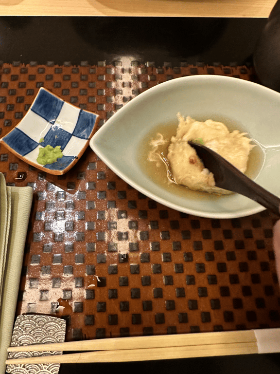 Not going to talk about food cuz thatās trite but my favorite part was the tofu in the beginning. It was nutty and delicious. There was a dover sole that I ate to fast I forgot to take a picture. Rock solid meal.After dinner we strolled through Ginza.