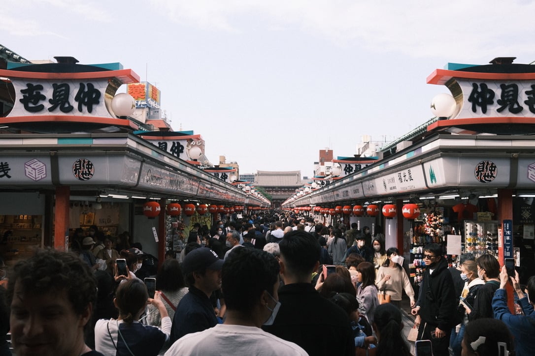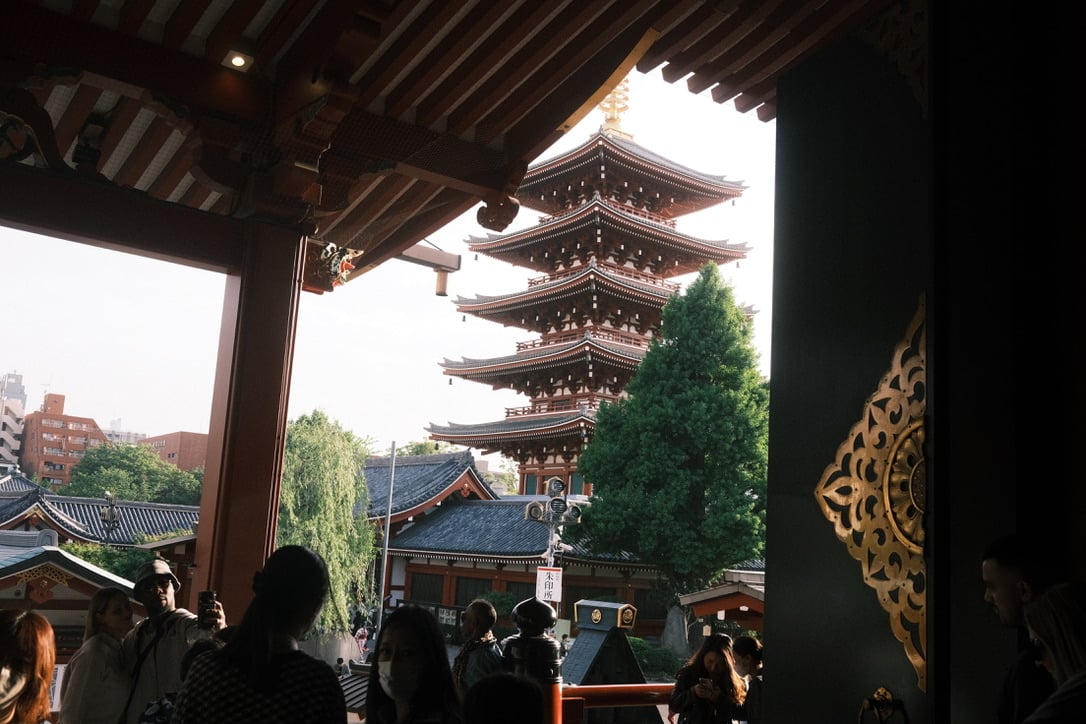 Kaminarimon Gate. This place felt straight out of the 80s. Everything seemed retro. The roads are wide here and there are a bunch of men carrying people in wagon-carts. I didn’t really notice them, they just blended into the tourism collage, so I forgot to take a picture and regretted it after. Dylan said that it was a crazy job and one of the cart guys heard him, pointed at himself with the most psycho smile and said “YES, CRAZY” and for the first time I felt unsafe in Japan. This would’ve been more concerning if we didn’t have a tendency to bring strangers to the edge of snapping so we shrugged it off and made our way through the area. There was a cool gate and then some shopping in the lead up to a temple. Definitely worth checking out on a nice day[3].