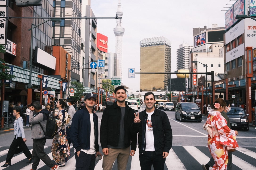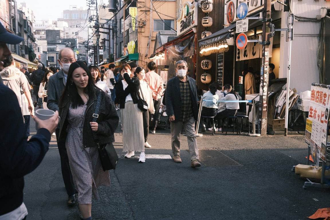 Saturday, 2pm. We were supposed to meet Kenji at 1pm. Since most of the day was lost to Friday night, we decided to move to 3pm. I made a quick coffee in these cool disposable pourover things[1] and we were off to Asakusa to see a cool area of Tokyo for a walk, some shopping, [light] day drinking and batting cages.