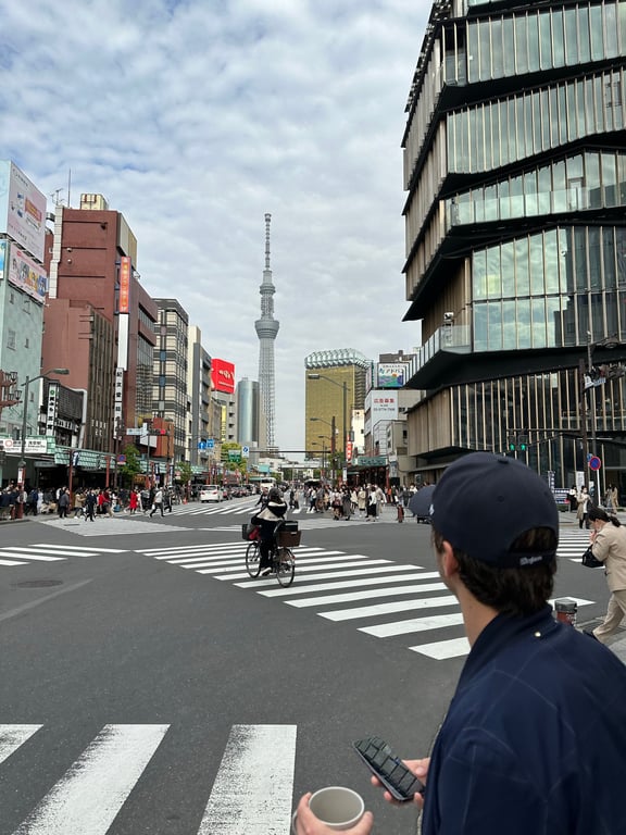 Theres a really cool intersection with a view of Tokyo Skytree.